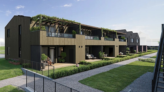På Tjøtta Vest skal vi bygge hundre boliger. I boligmiksen er det rekkehus og leiligheter i flermannsboliger som dominerer, men noen tomannsboliger og en enebolig er også tegnet inn. Fine fellesområder med samlingsplasser for både små og litt større gjør det ekstra trivelig å bo her.