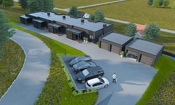 Lettstelte rekkehus med høy kvalitet klare for bygging.