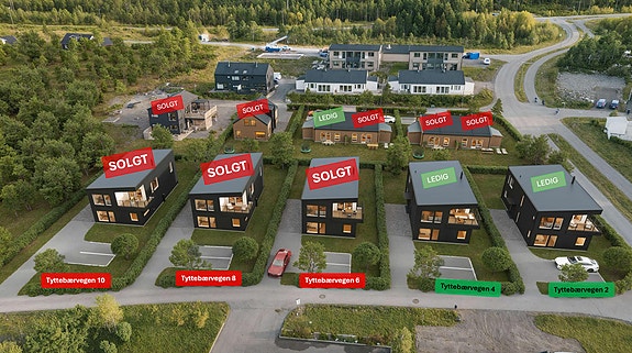 Arwen er kun vist som illustrasjon på alle tomtene i Tyttebærvegen, mulig å velge en annen boligtype i vår katalog. Solgt Noomi i Tyttebærvegen 10 og Arwen i Tyttebærvegen 8 og 6.