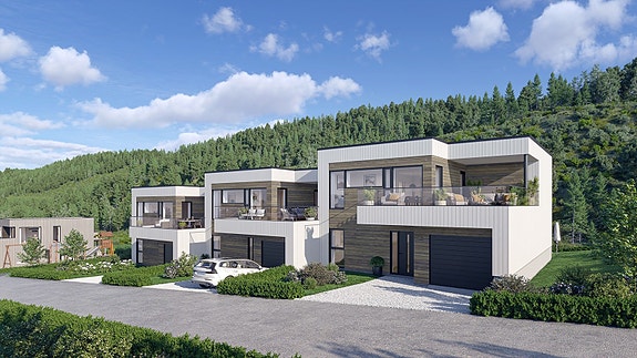 2 av 3 solgt - Bygging igangsatt | 3 lekre og innholdsrike eneboliger i kjede med gode sol- og utsiktsforhold | Garasje