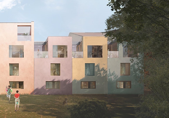 Fargepaletten på de sammenkjedede byhusene henter inspirasjon fra Oslos klassiske murgårder. Sammen med nøye utvalgte, varige materialer gir dette en nyansert helhet som føyer seg naturlig inn blant de omkringliggende bygårdene. Sørfasaden brytes opp, slik at hver enkelt bolig får sin egen inntrukne terrasse og skaper en slank bygningsfasong.