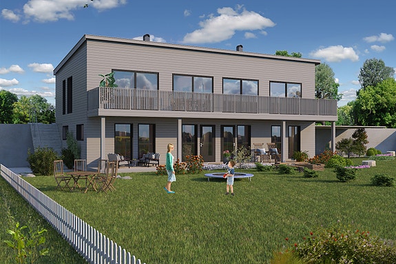 Velkommen til Mykingvegen 466 helt nye tomannsboliger under oppføring. Illustrasjon avvik kan forekomme.