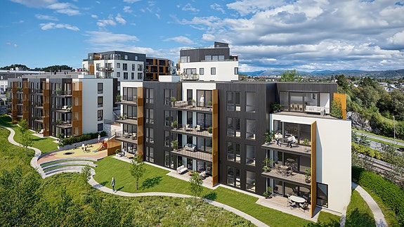 Bo urbant, solrikt og sosialt - rett ved bybanestoppet på Kokstad! Nå lanseres salgstrinn 3 med 26 moderne leiligheter i hus A og B.