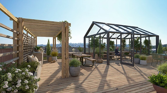Takterrassen blir bare helt fantastisk! Møt naboer eller book den til dine private arrangement.