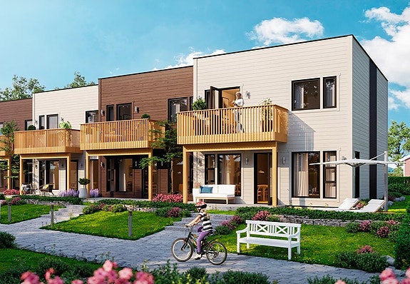 Denne delen av prosjektet består av en vertikaldelt familiebolig i rekke - totalt 4 enheter. Alle enhetene får egen hage og gode parkeringsforhold. Boligene vil ligge i et nytt boligfelt, med ferdig opparbeidet teknisk anlegg, asfalterte veger og gatelys.