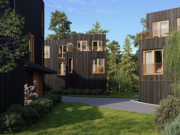 Her er det lune soner, grønne hager og fellesområder som inviterer til møtepunkt mellom naboer.