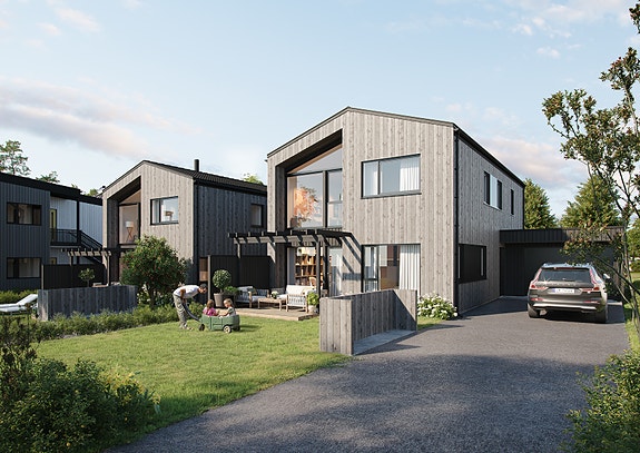 Boligene er bygget i en moderne nordisk stil med fasade i vedlikeholdsvennlig trekledning og store vindusflater som slipper inn rikelig med dagslys.