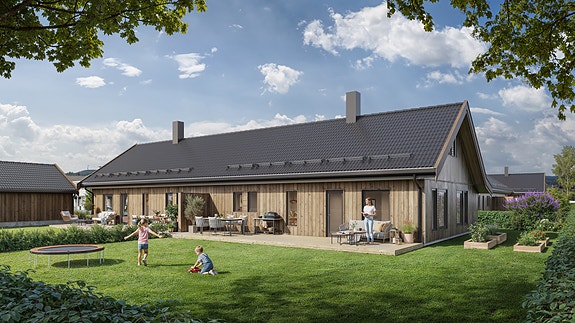 Boligene får et moderne uttrykk, gjennomtenkte planløsninger og smakfulle materialvalg. Kjøkkenet leveres fra Norema med integrerte hvitevarer, og boligen får kvalitetslaminat, delikate fliser samt balansert ventilasjon med varmegjenvinning. Her får du også en solrik terrasse, hage og god oppbevaringsplass i utvendig bod. Parkering skjer i carport og på egen gårdsplass.