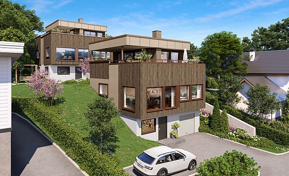 2 moderne og stilrene funkisboliger | Fantastisk utsikt og solforhold | Meget sentral beliggenhet | Stor takterrasse