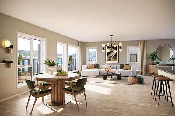 Leiligheter i prosjektet får moderne løsninger, gjennomtenkte planløsninger og god standard på materialvalg. Her er det lagt vekt på kvalitet, komfort og estetikk slik at du kan flytte rett inn og føle deg hjemme fra første dag.