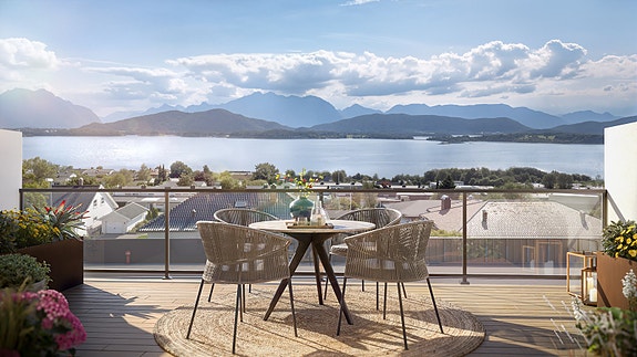 Åsetunet vil bestå av 6 boligblokker med tilsammen 65 leiligheter, og 8 rekkehus med mulighet for utleie. Her er utsikt over Åsefjorden, Storfjorden og Hjørundfjorden - og ikke minst Sunnmørsalpene! Leilighetene spenner fra 40 til 140 kvadratmeter og ligger i seks forskjellige blokker, med heis og parkering i under- etasjen. Her bor du med enten balkong eller terrasse, rundt et rolig bilfritt tun med flotte fellesområder. Leilighetene kommer til salgs på nyåret 2026!