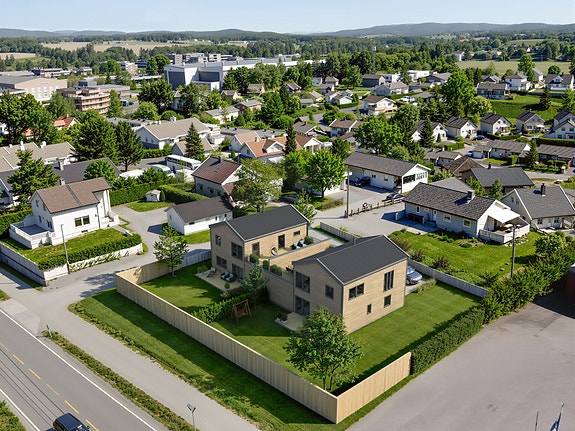 Tomannsboligen ligger i et rolig og etablert område som passer godt for familier. Her er det kort vei til skole, barnehage, kollektivtransport og daglige tjenester.