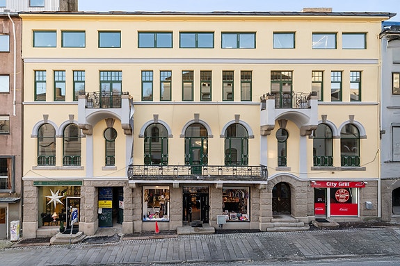 Her er hele bygården i Torggata 5 gjennomgått en total oppgradering av fasader, og etasjene fra 2. og opp til takterrassen er renovert.