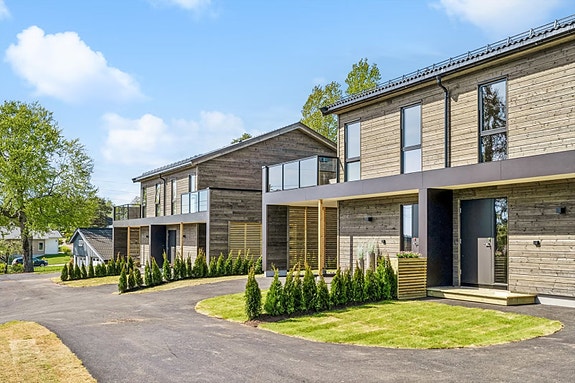 Ni flotte tomannsboliger er under oppføring. Flere er forhåndssolgt. 3 ledige boliger i første byggetrinn vil stå ferdige til sommeren 2026. Boliger til salgs: 52A, 54A, 54B. Bildene er fra et tilsvarende prosjekt vi hadde på en annen adresse.