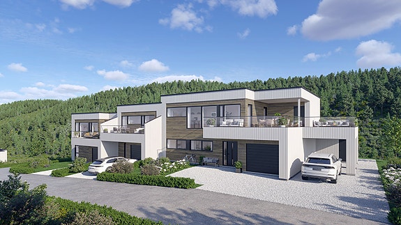 3 moderne eneboliger i kjede med varierende innhold og størrelse. Boligene får et moderne og stilrent uttrykk med planløsninger tilpasset ulike behov og livssituasjoner.