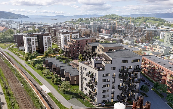 Her kan man flytte rett inn i splitter nye og moderne selveierleiligheter med flott beliggenhet og høy standard. Materialbruken skaper balanse mellom helhet og variasjon. Teglstein, pussede flater og trepanel gir hvert bygg sitt særpreg, samtidig som de danner et harmonisk uttrykk.