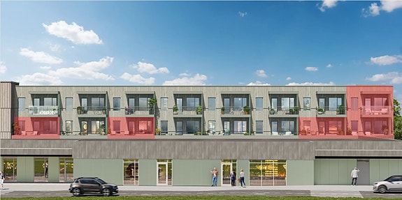 Stasjon Borettslag består av 30 andelsleiligheter fordelt over to etasjer. Beliggenheten blir ikke mer sentral - på toppen av det nye minisenteret i Stange sentrum. Illustrasjon - avvik vil forekomme.