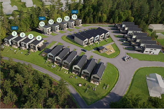 Alle eneboliger kommer med en egen garasjeplass og en biloppstillingsplass.