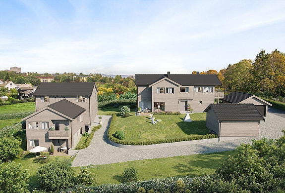 Hovedenhetene får hver sin doble garasje, mens sekundærenhetene får egen biloppstillingsplass.