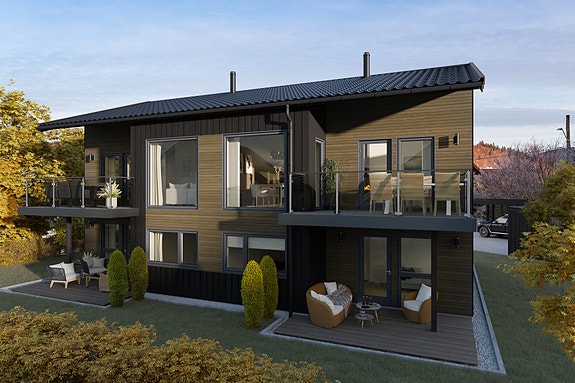 I Klokkervegen skal det oppføres en moderne tomannsbolig med to romslige boenheter over to plan. Boligene får gjennomtenkte løsninger, gode oppholdsrom og fine uteplasser.