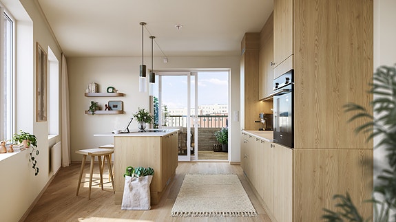 Velkommen til Kastanjelunden! Et nytt boligprosjekt av OBOS med totalt 97 leiligheter. Første salgstrinn hus B består av 46 leiligheter fra 2-5 roms. Illustrasjon av interiørkonsept Premium som er et tilvalgskonsept.