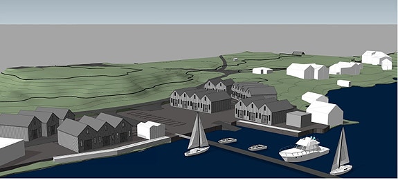 Deler av tomten er i dag bebygget med et eldre verkstedbygg. Bygget tenkes benyttet som lager under byggeprosessen og er deretter planlagt revet til fordel for utvidelse av prosjektet med naust/rorbuer.