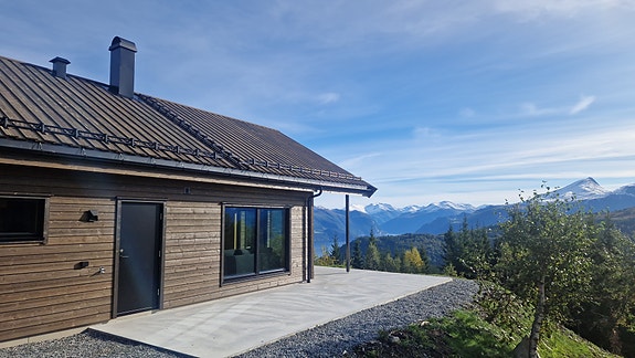 Ny massivtrehytte med flott fjordutsikt, klar for innflytting.