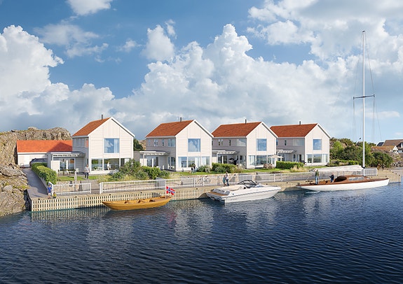 Prosjektet består av fire havhytter på 135 kvm med fire soverom, vinterhage, brygge og egen båtplass bare få meter fra terrassedøra. Hver hytte koster kr. 7 990 000,-. Les mer på prosjektets hjemmeside: https://www.groningen-brygge.no/