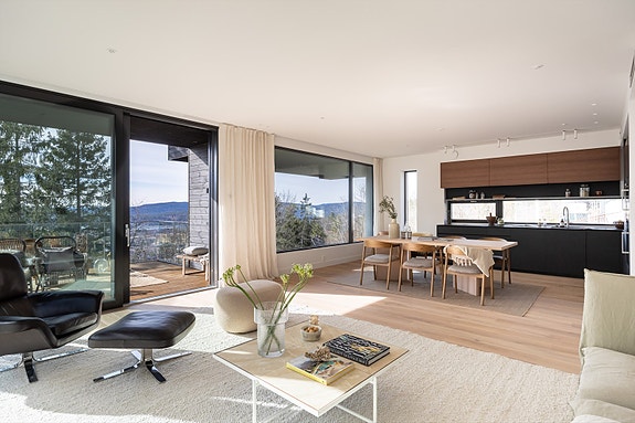 Solrik utsiktsleilighet med høy standard - 1 garasjeplass- Balkong på ca. 23 kvm. - Trimrom - Golfsimulator - Heis