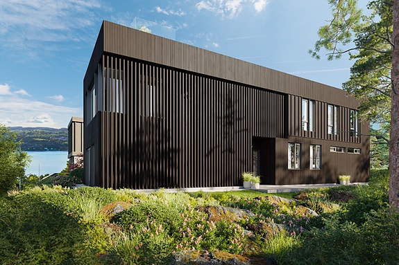 Ny eksklusiv enebolig med takterrasse og panorama fjordutsikt | Tilbaketrukket beliggenhet | Dobbel garasje og hybel