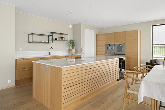 -Leveranse til kjøkken og bad er levert av Svane Kjøkkenet og er utstyrt med eksklusive hvitevarer fra Gaggenau.