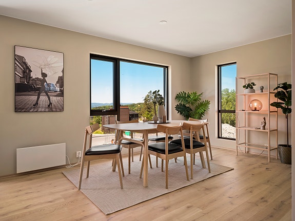 Boligene får en vestvendt beliggenhet, hvor flere får en nydelig utsikt utover fjorden. Det vil etableres store felles lekeplasser og trivelige uteområder for et hyggelig nabolag.