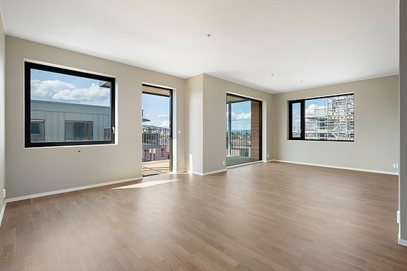 Stilren, stor 3-roms på 80m² under oppføring | 5. etasje med vestvendt balkong | 2 bad | 5 års garanti | Parkeringsplass