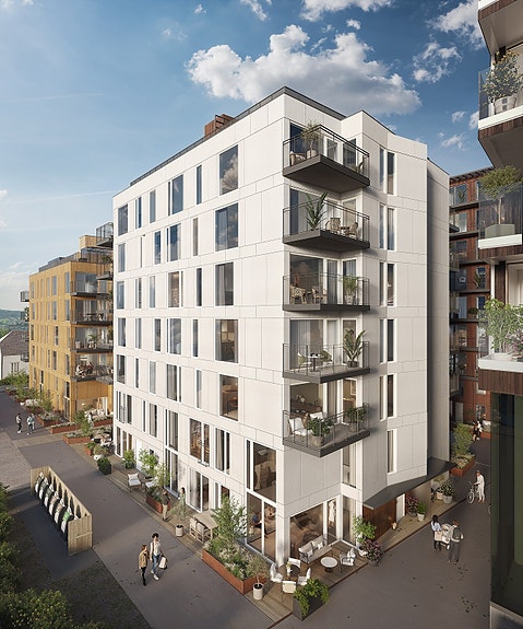 Denne leiligheten befinner seg i bygg C - én av de fire flotte byggene, med egen takterrasse. Leiligheten er en eksklusiv 4-roms hjørneleilighet m/vestvendt balkong. Leiligheten befinner seg i et nytt og spennende tilskudd til det nye sentrumsområdet i Lillestrøm. Hjertet av Lillestrøm med alt et rikt byliv kan tilby, ligger kun få minutters spasertur fra boligen.