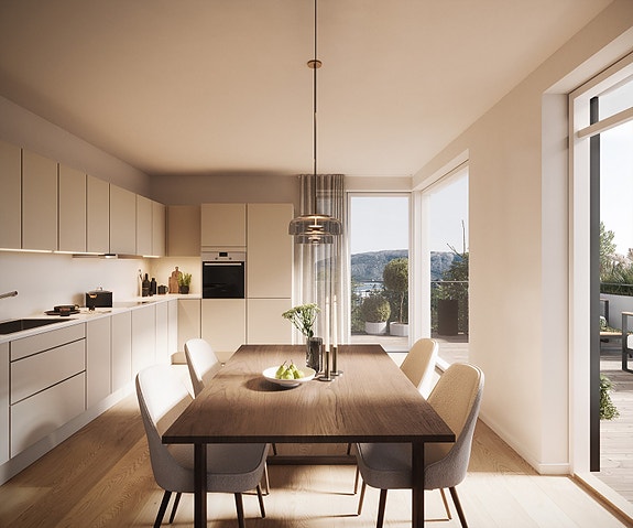 Illustrasjon fra samme leilighet i nabobygget (utsikt stemmer derfor ikke)