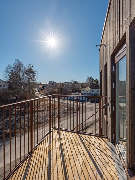 De fleste leilighetene har tilgang til privat balkong, og noen har fransk balkong. Alle leilighetene i 5. etasje har egen private takterrasse med flott utsikt og gode solforhold.