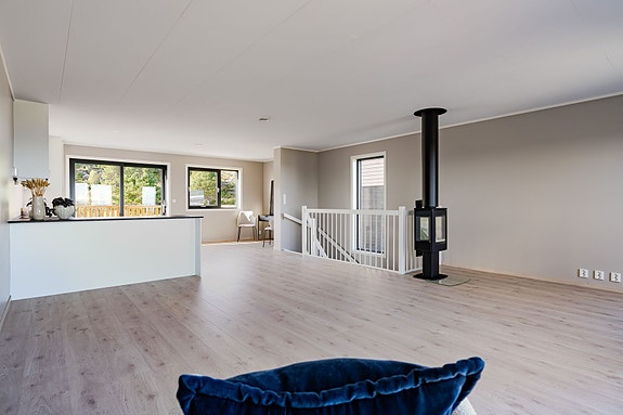 Stue med god plass til sittegruppe, tv benk m.m. Vedovn som skaper koselig atmosfære, i tillegg til å være alternativ oppvarmingskilde. Utgang til balkong.
