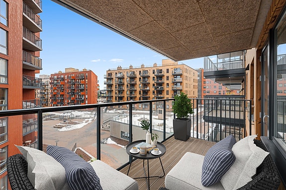 Dette er en romslig leilighet med en god planløsning og en herlig balkong. Bildet er digitalt innredet, avvik vil forekomme