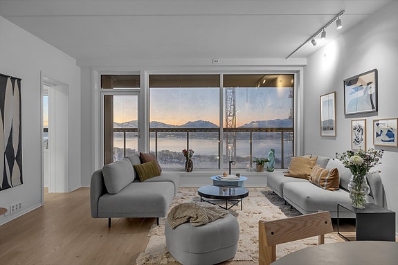 Velkommen til en moderne og attraktiv 4-roms leilighet med god intern beliggenhet i byggets 7. etasje. Leiligheten har vestvendt orientering som gir optimale solforhold, rikelig lysinnslipp og en flott utsikt over Tromsøysundet, Tromsøya og fjellene på Kvaløya.
