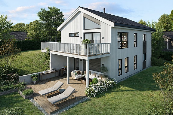 Dette huset er et eksempel på hva vi kan bygge for deg på Bildenmoen. Velg blant våre ulike hustyper, og vi kan tilpass dem etter dine ønsker og behov. Vi utvikler nå flere nye husmodeller og du kan også få være med å lage ditt hus. Vi hjelper deg med å finne løsninger slik at huset passer tomten, din livsstil og ditt budsjett.
