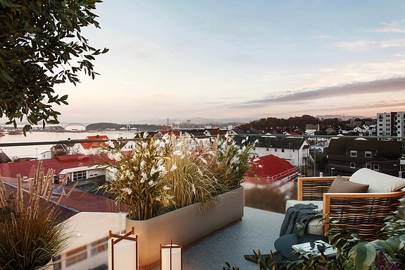 Illustrasjon av utsikt fra balkong leilighet H0703! Det gjøres oppmerksom på at illustrasjoner kun er ment for å danne et inntrykk og kan avvike fra endelig leveranse