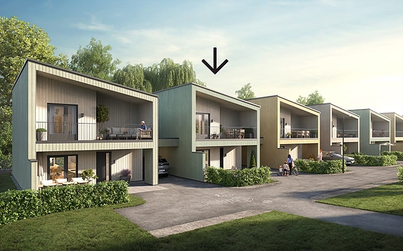 Prosjektert enebolig i rekke med lyse flater og gjennomtenkt planløsning som er tilpasset en moderne levemåte. Det er lagt fokus på gode uteplasser, åpne løsninger og gode lysforhold med de store vindusflatene. Boligen kan leveres med opp til 4 soverom. Oppholdsrommet i 2. etasje kan også benyttes som kontor, ekstra stue, gaming- eller gjesterom. Bilen parkerer du lettvint i carport rett ved inngangspartiet.