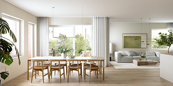 Leiligheten ligger på prosjektets hjemmeside som visningsleilighet. Her kan du klikke deg rundt i alle leilighetens rom og få den gode følelsen av gjennomført standard og kvalitetsrike løsninger.