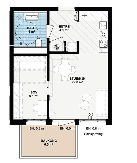 - Lavere strømregning og god standard. Boligene er også mer energivennlig, som kan bety en lavere strømregning. Balansert ventilasjon gjør det også rimeligere å varme opp boligen, og sørger for et godt inneklima, hele året!