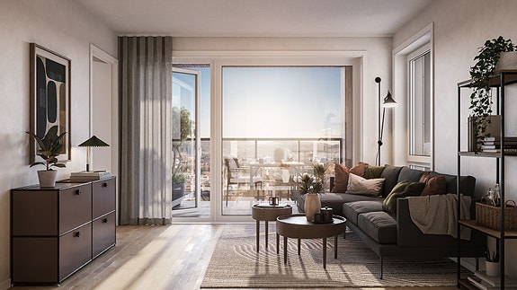 Stilren 2-roms hjørneleilighet på 36m² | 7m² balkong med kveldssol | IN-ordning | Fjernvarme | Innholdsrike felleskost.