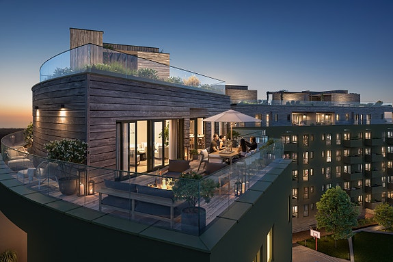 Leilighet A0701 får en fantastisk takterrasse på hele 76 kvm. hvor du kan følge solen gjennom hele dagen.