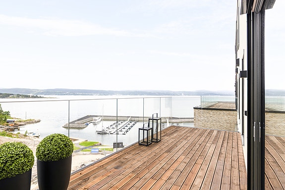 - 6. etasje med nydelig utsikt mot Oslofjorden og solrik sydvestvendt balkong på 18 kvm. Nest øverste etasje så ingen balkong over din, gjør det fritt og lyst.