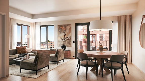 Leilighetene er tegnet med smarte planløsninger, luftige oppholdsrom og nøye utvalgte materialer. Den gode takhøyden sørger for at lyset strømmer fritt inn, og bygningene er planlagt slik at de skaper vakre omgivelser rundt tunet, gårdsrommet og parken. Karnapper og hjørnevinduer gir rikelig med lysinnslipp og utsikt i flere retninger, noe som gir hver leilighet en ekstra dose kvalitet og særpreg. Med direkte tilgang til din egen balkong eller terrasse er det enkelt å nyte frisk luft, og et deilig sted hvor du kan slappe av med en kopp kaffe, dyrke planter, eller nyte et måltid under åpen himmel.