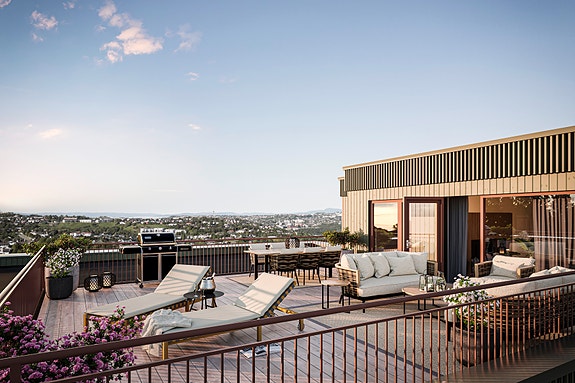 I 7. etasje nyter man en helt fantastisk utsikt, her illustrert fra en annen leilighet i samme prosjekt - Illustrasjon, endringer kan forekomme