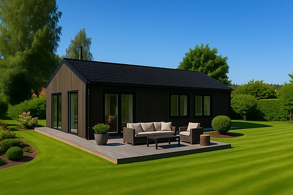 Prisen inkluderer nøkkelferdig husmodell Gushus, tomt, graving og grovplanert hage.